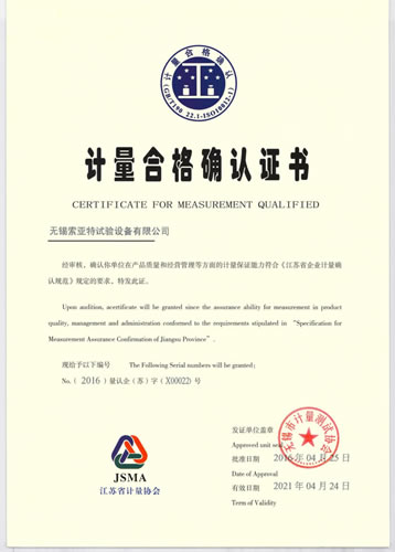 江蘇省計量合格確認企業